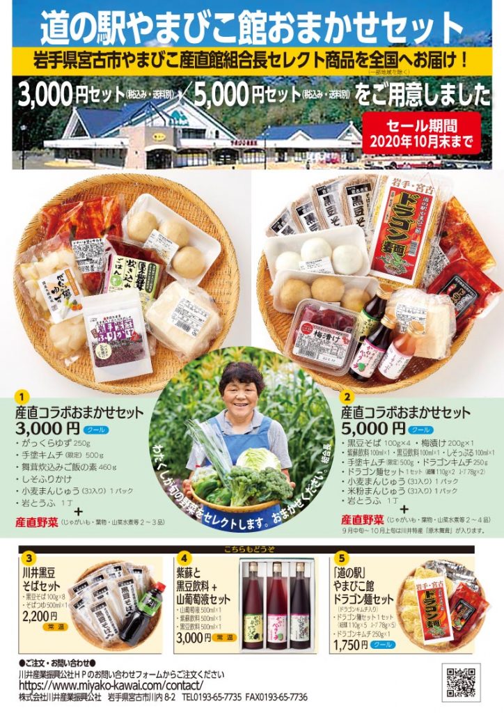 道の駅やまびこ館で販売している特産品に加え、やまびこ産直組合長セレクトの野菜等を詰め合わせたコラボセットです。