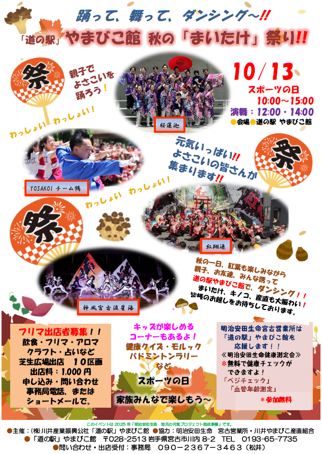 10月13日(スポーツの日)に、「道の駅」やまびこ館 秋のまいたけ祭りを開催いたします。