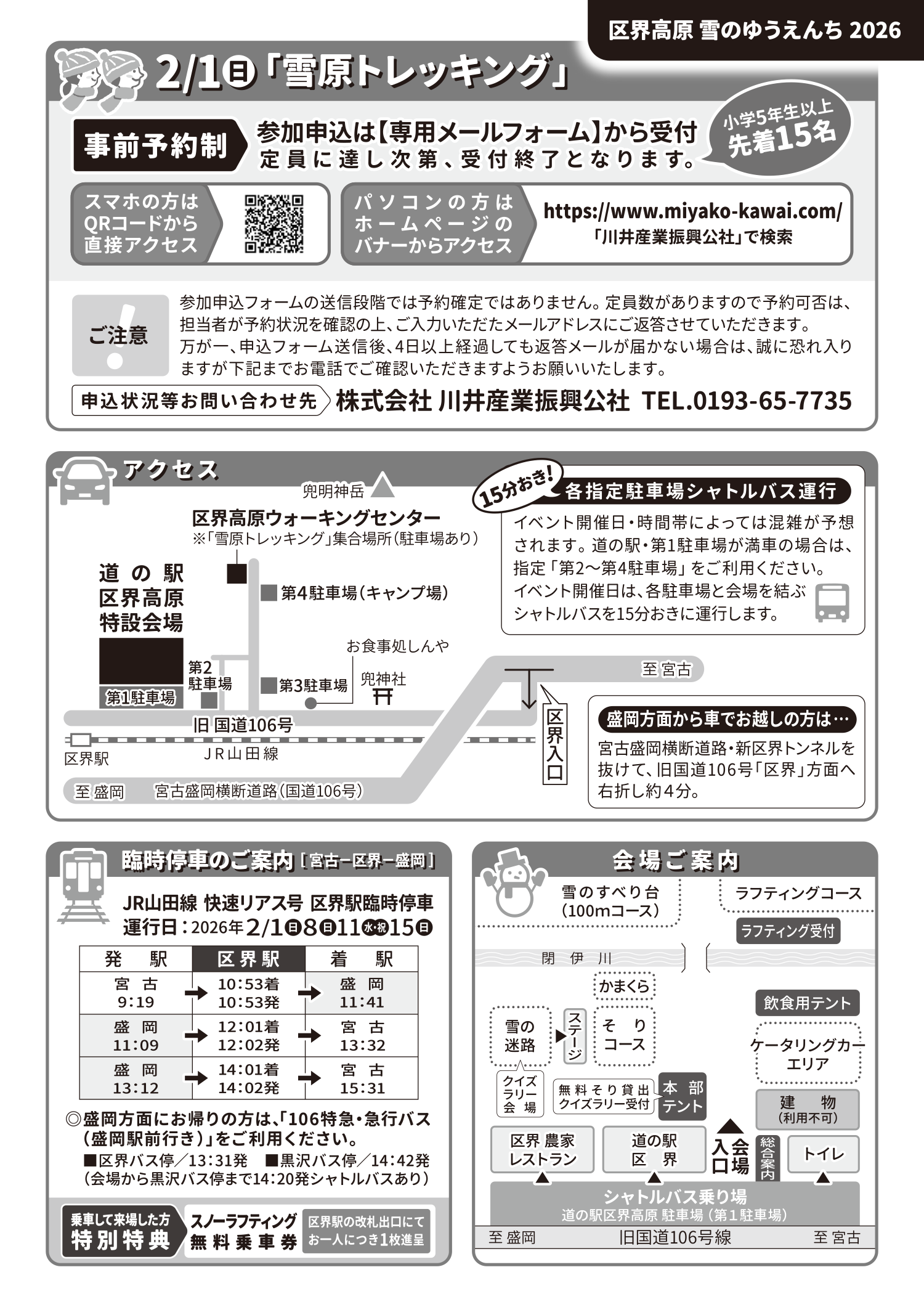 2026年2月に道の駅 区界高原 特設会場で 開催します。